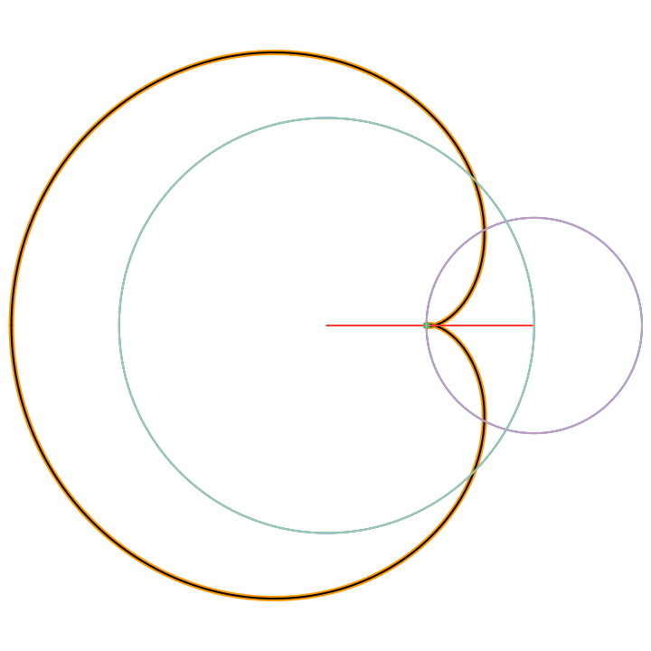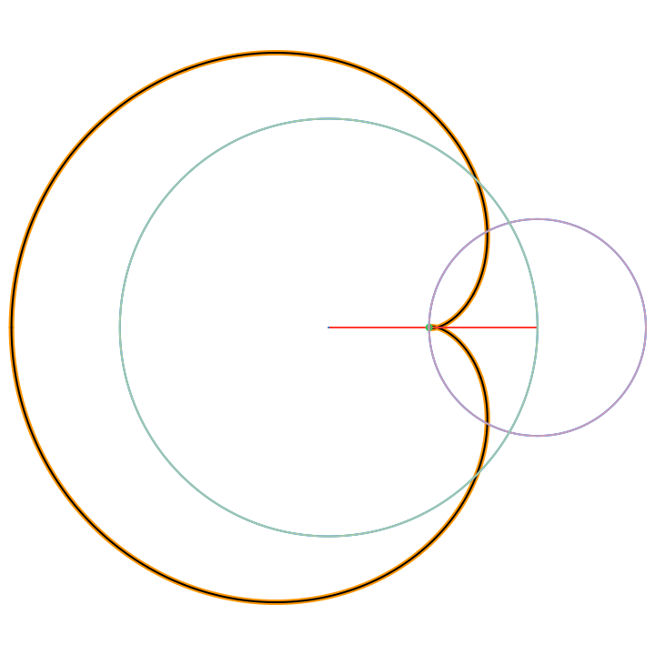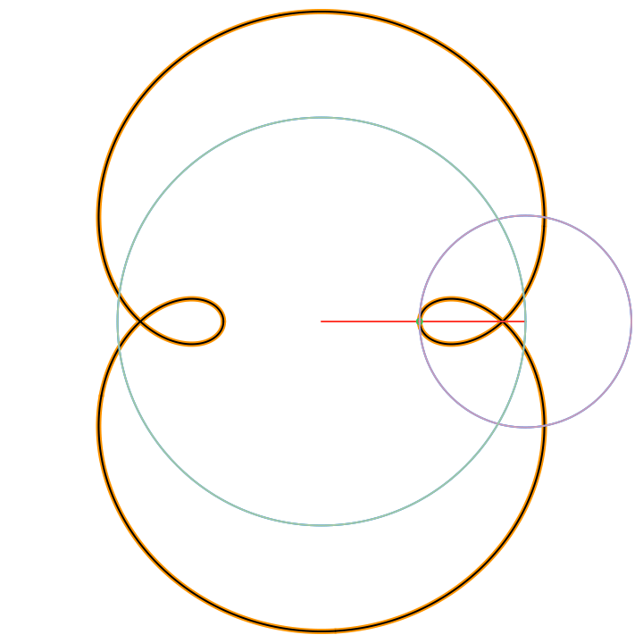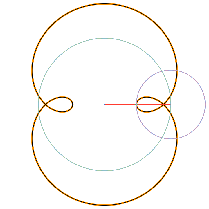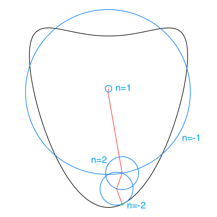 Here is an example with n = 1,-1,2,-2 - don't miss the the very small circle at the center! Look closely at the direction the radii of the circles are rotating in the animations to see how they alternate direction. This is because the series is ordered as follows, with n = 0 the origin point (or degenerate circle):