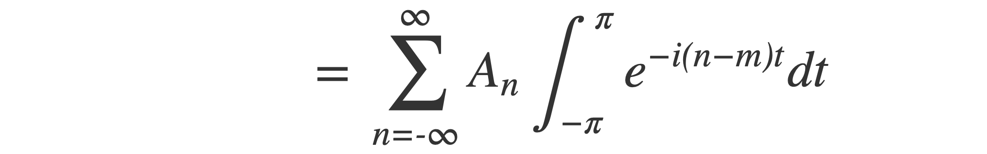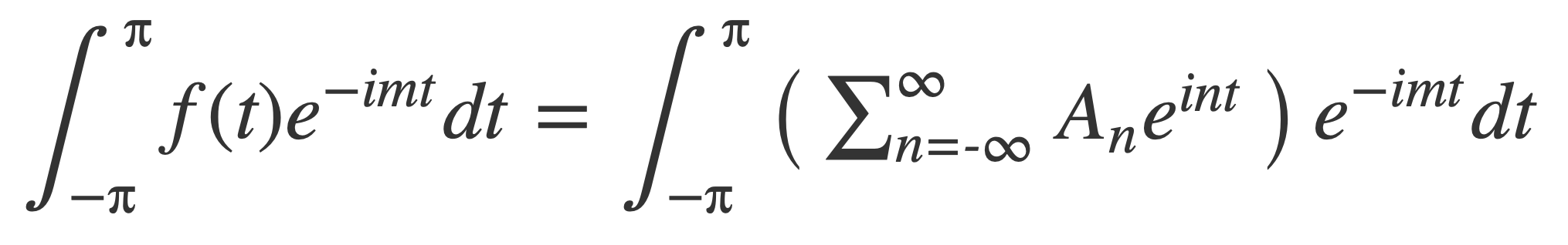 To derive the expression for the coefficient An, multiply each side of this expression by e-imt, and integrate each side over [-π,π], applying previous results: