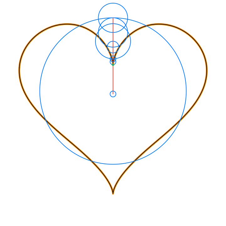 However, the function fourierSeries is not actually used for the drawing because the red line segments and epicycle circles require the Fourier series partial sums.