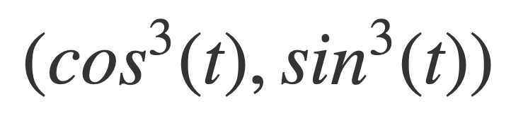 The Astroid curve, a pinched in circle, in 2D parametric form is given as, t in [-π,π] :