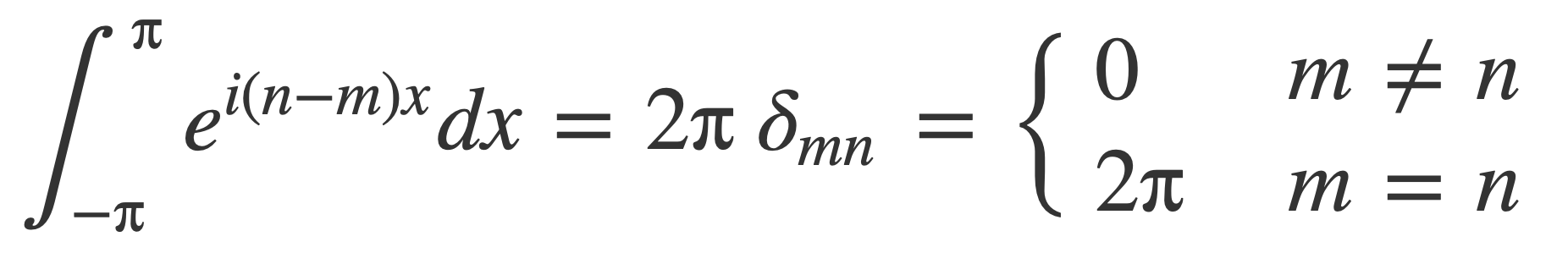 This final result is useful for the following calculation to derive the coefficients of the Fourier series.