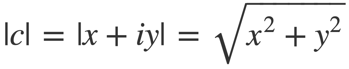 The modulus |c| of a complex number c = x + i y is a real number that is its distance from the origin, given by: