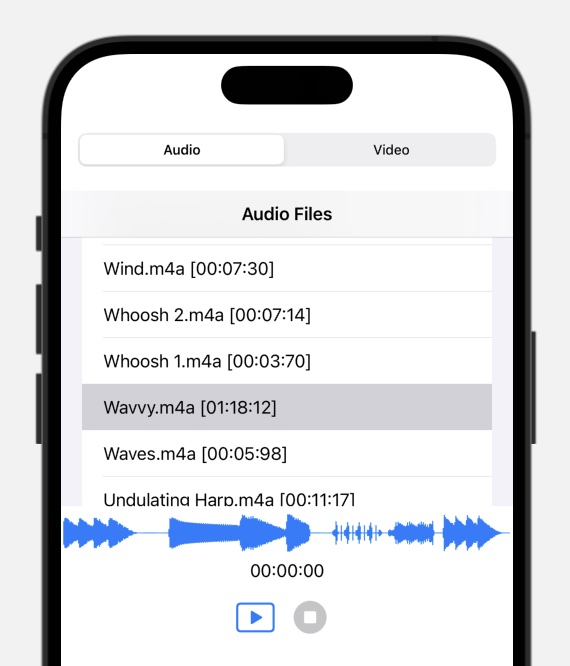 Files in resource folders Audio Files or Video Files with specific extensions are loaded with loadFiles, based on the value of mediaType, selected by the Picker in PlotAudioAppView: