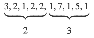 Specifically an array [3,2,1,2,2,1,7,1,5,1,4] is downsampled to [2,3]: